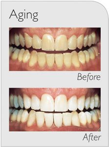 A porcelain veneer is a covering over the tooth that gives natural colour and bridges small gaps. Veneers can be a great alternative to braces for slight orthodontic problems and provide a beautiful smile in a short amount of time.